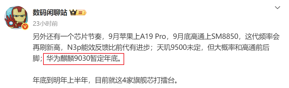 在智能手机芯片赛道硝烟弥漫之际,即将掷出一枚关键棋子聚宝盆,那就是华为下一代旗舰芯片麒麟9030,将于今年年底随Mate80系列一同亮相。