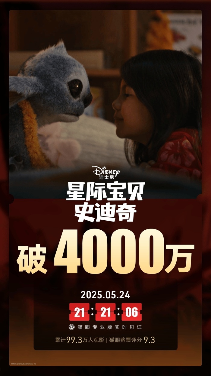 据猫眼专业版数据,电影《星际宝贝史迪奇》上映2天黑牛策略,总票房破4000万。