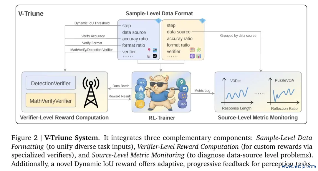 V-Triune的核心贡献在于,首次提出了一个能够统一处理视觉感知和视觉推理任务的强化学习系统。它就像一位高明的“指挥家”,让视觉语言模型(VLM)在一个训练流程中同时学习这两类任务,从而大幅提升视觉信息的综合利用效率和模型的泛化能力。